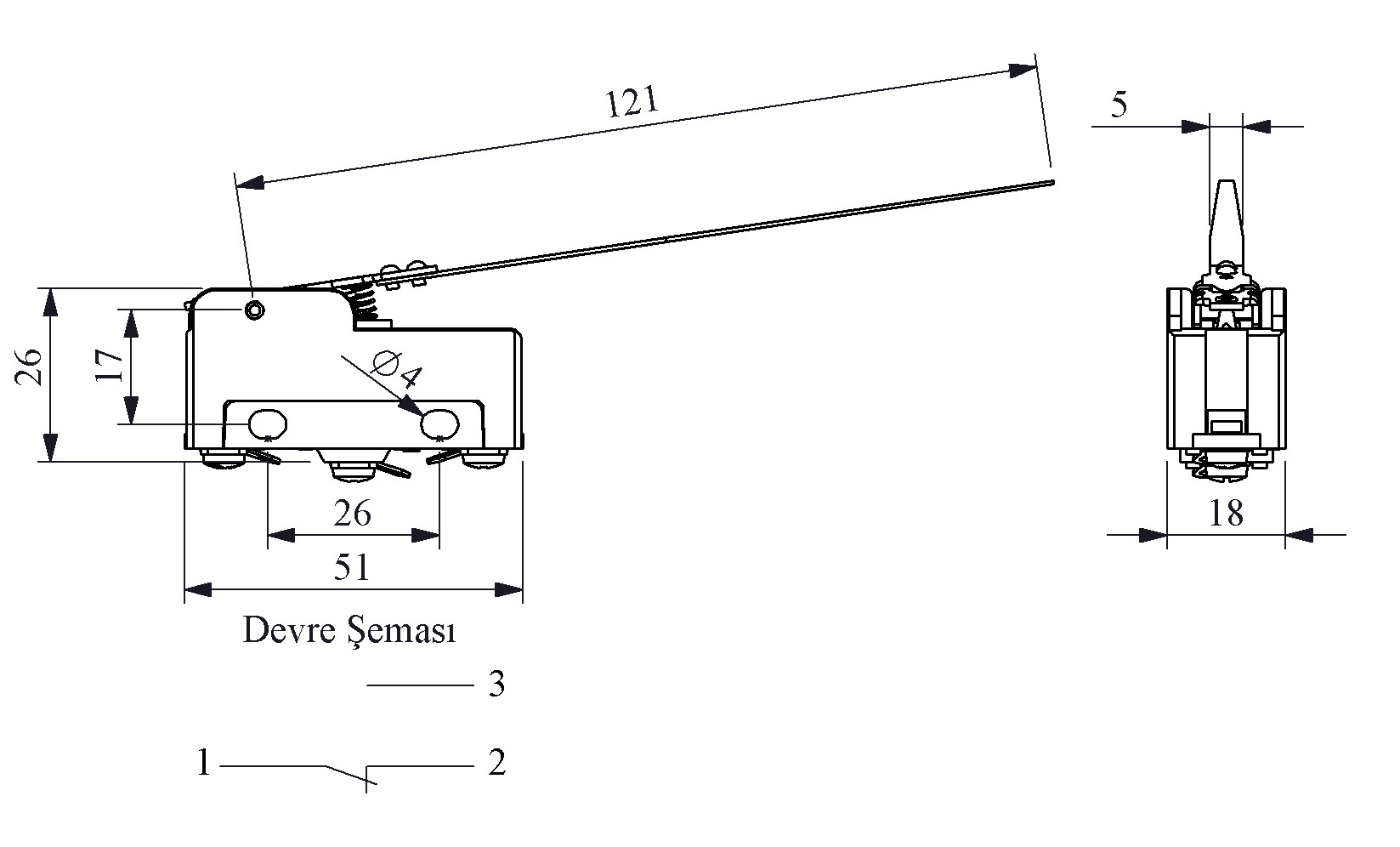 Metal Uzun Kollu 1CO MN2 Serisi Plastik Mini Switch