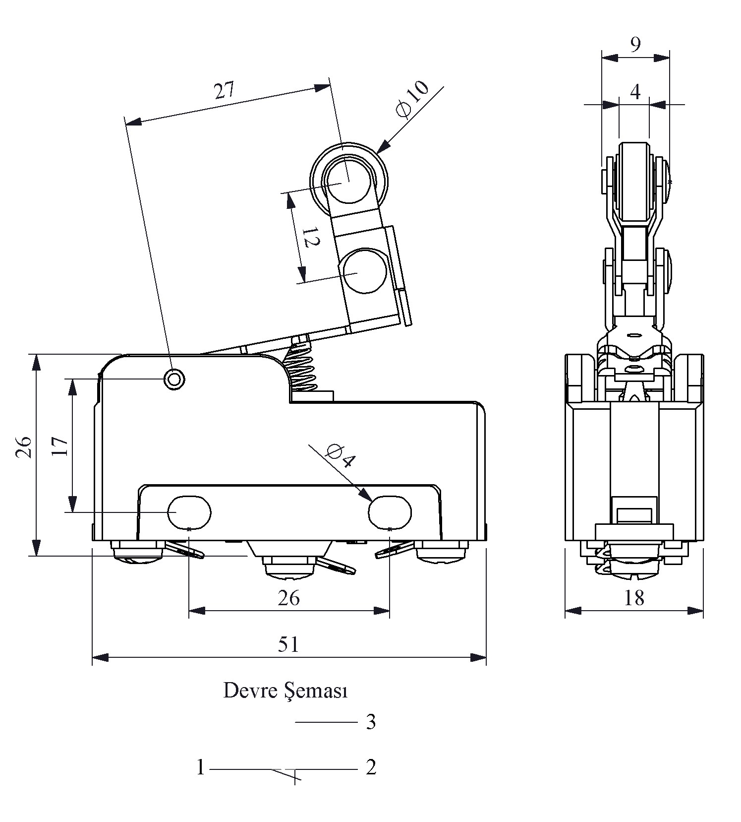 Metal Kısa Kollu Makaralı 1CO MN2 Serisi Plastik Mini Switch