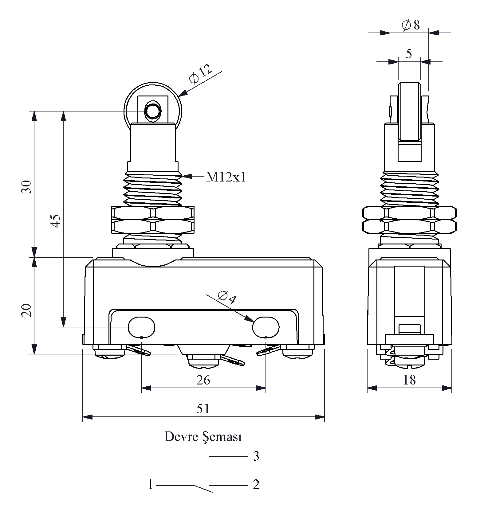 Metal Makaralı Pimli 1CO MN2 Serisi Plastik Mini Switch