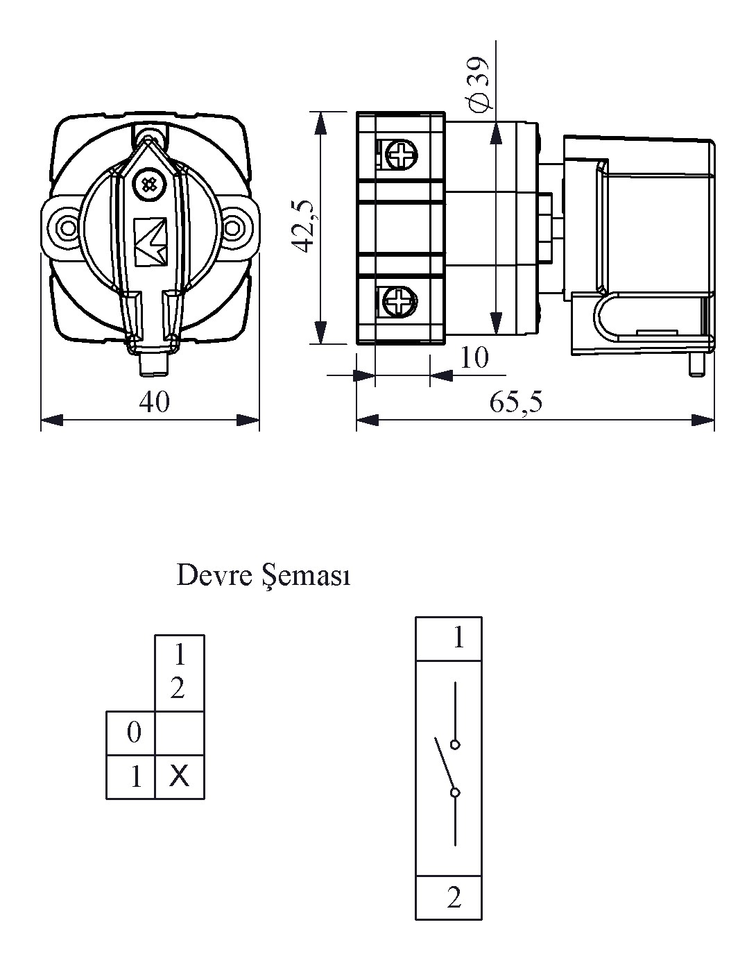 10A On-Off 1 Faz (0-1) 60° Kilit Takılabilen 48*48 Pako Şalter