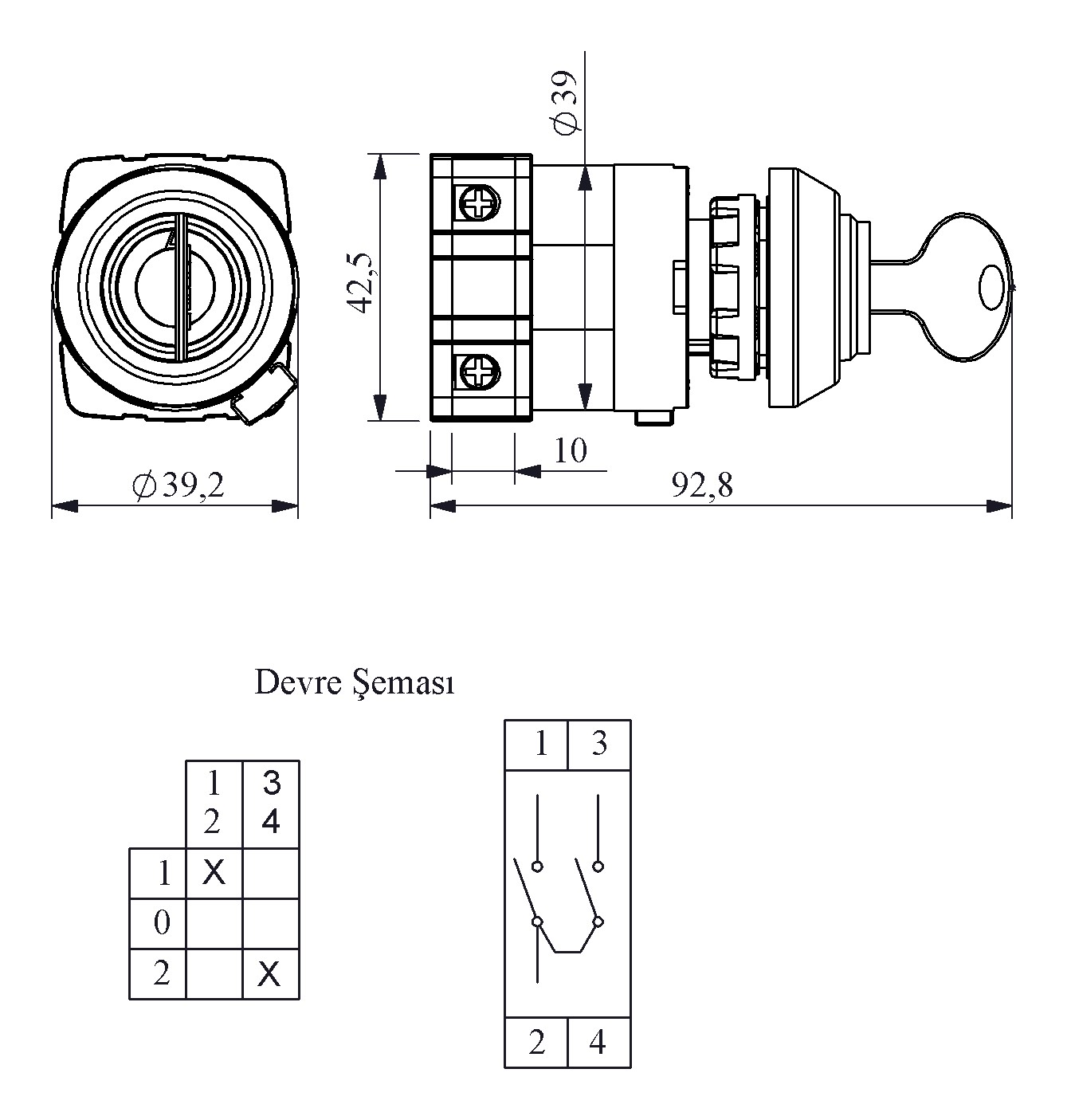 10A Kutup Değiştirici 1 Kutup (1-0-2) 60° Anahtarlı Kolay Montajlı Pako Şalter