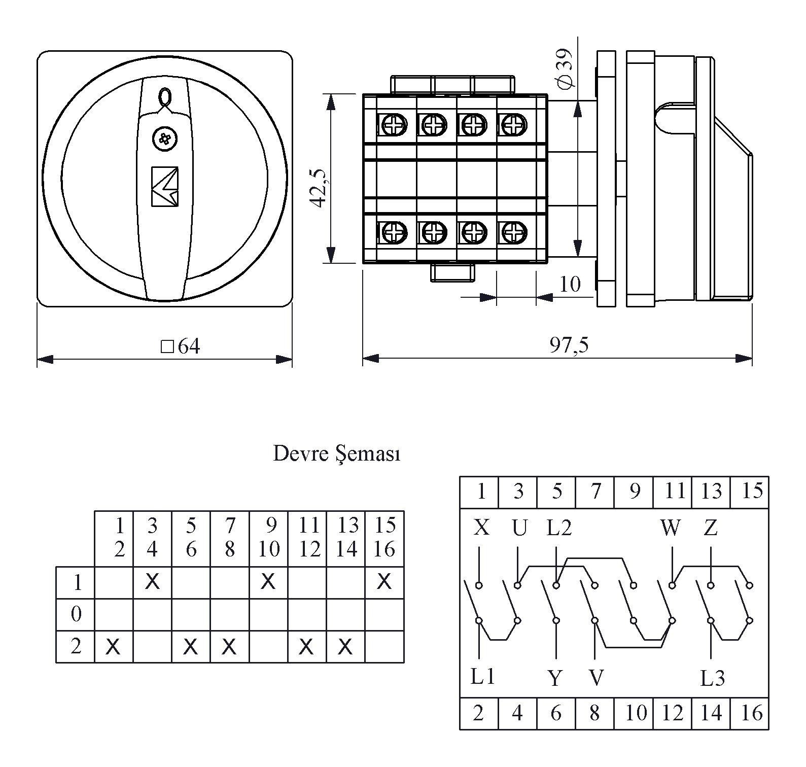 16A Çift Devir 3 Faz (1-0-2) 60° Emniyet 64*64 Pako Şalter
