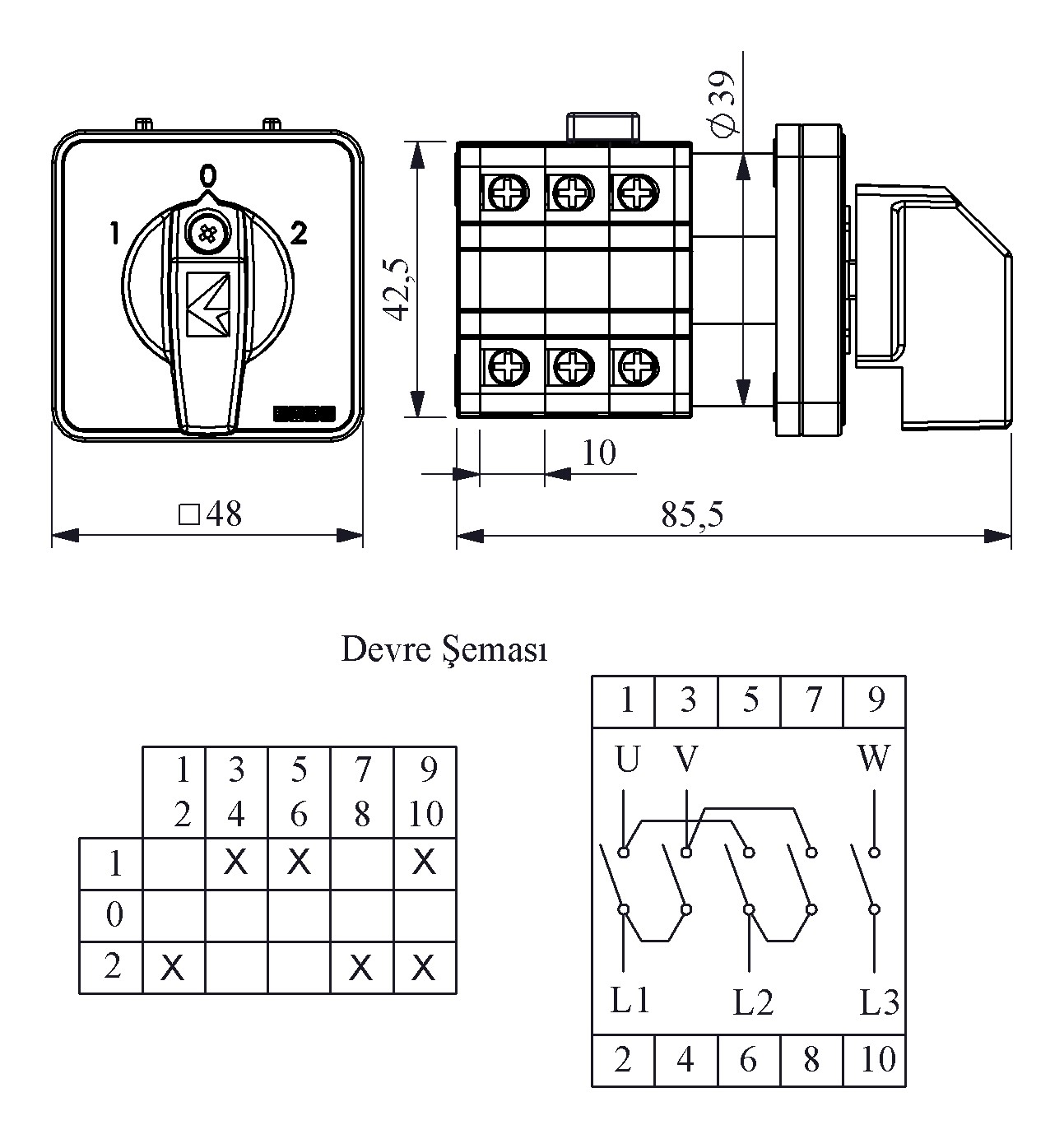 16A Enversör 3 Faz (1-0-2) 60° 48*48 Pako Şalter