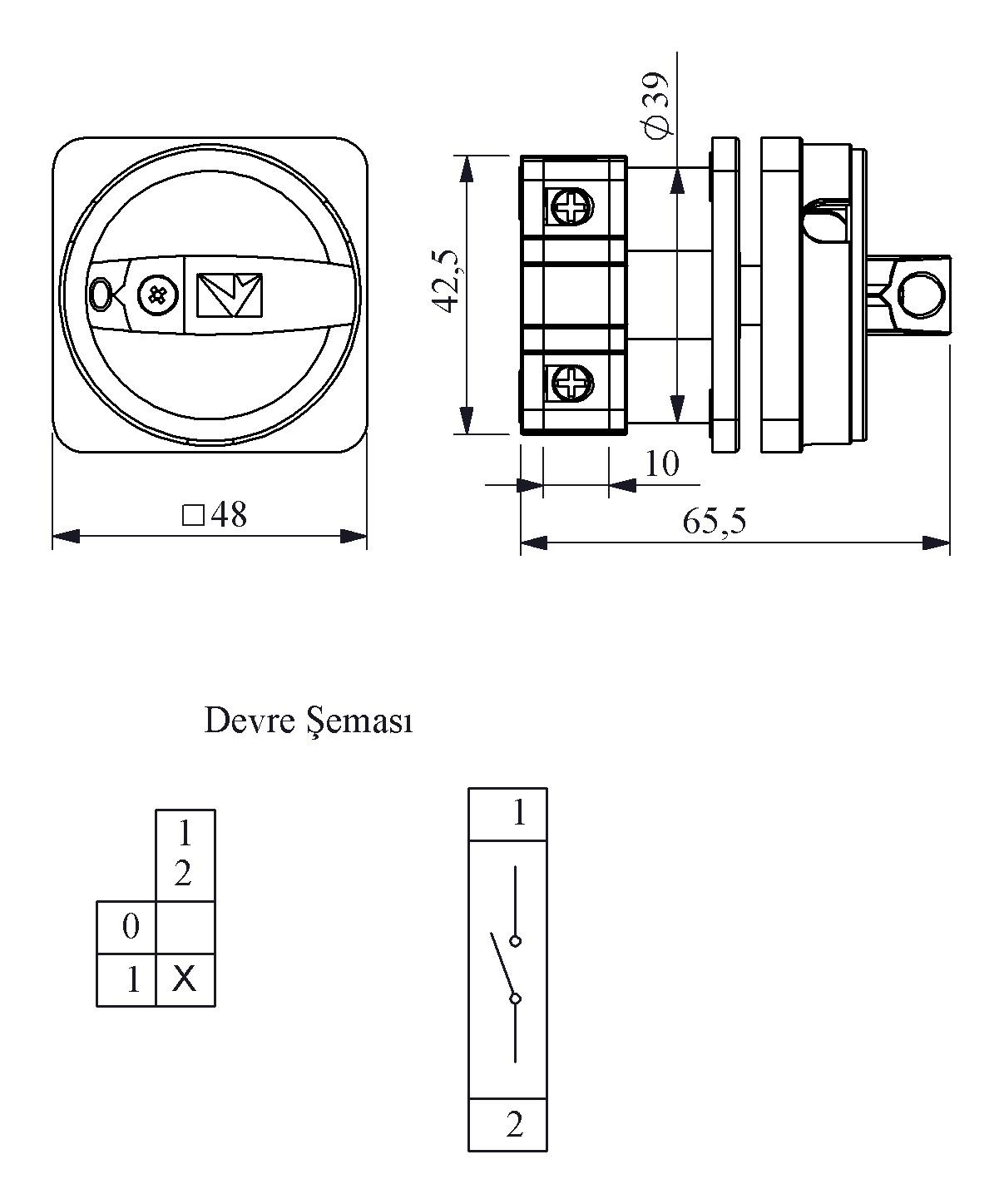 20A On-Off 1 Faz (0-1) 90° Emniyet 48*48 Pako Şalter
