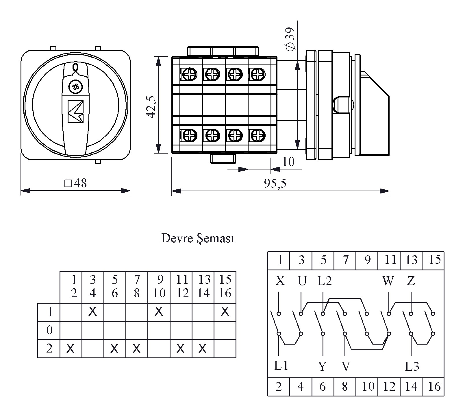 20A Çift Devir 3 Faz (1-0-2) 60° Emniyet 48*48 Pako Şalter