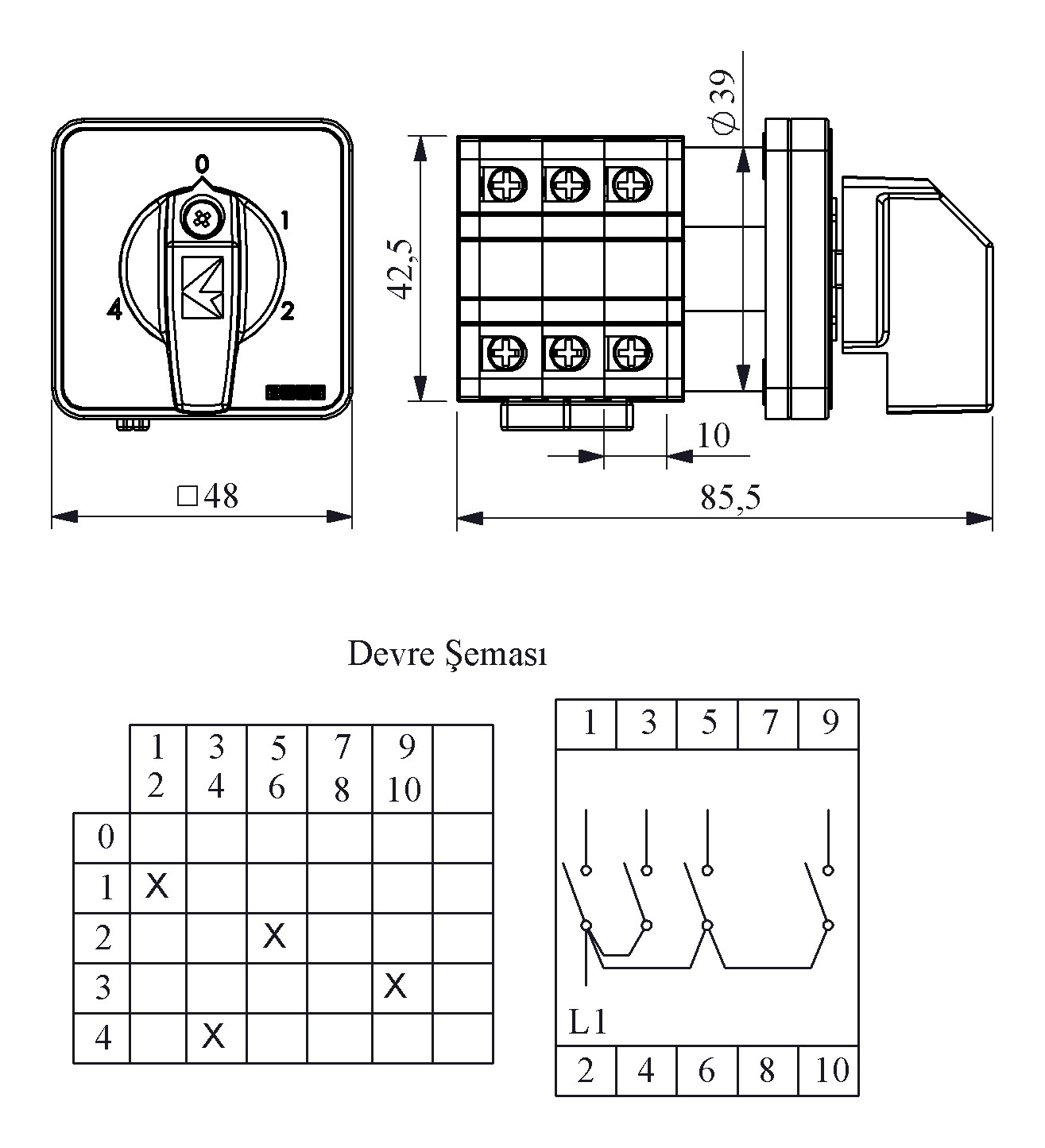 20A 4 Kademeli 1 Kutup (0-4) 60° 48*48 Pako Şalter