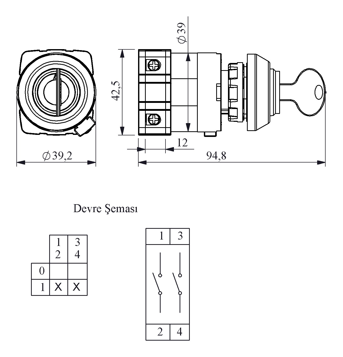 25A On-Off 2 Faz (0-1) 60° Anahtarlı Kolay Montajlı Pako Şalter