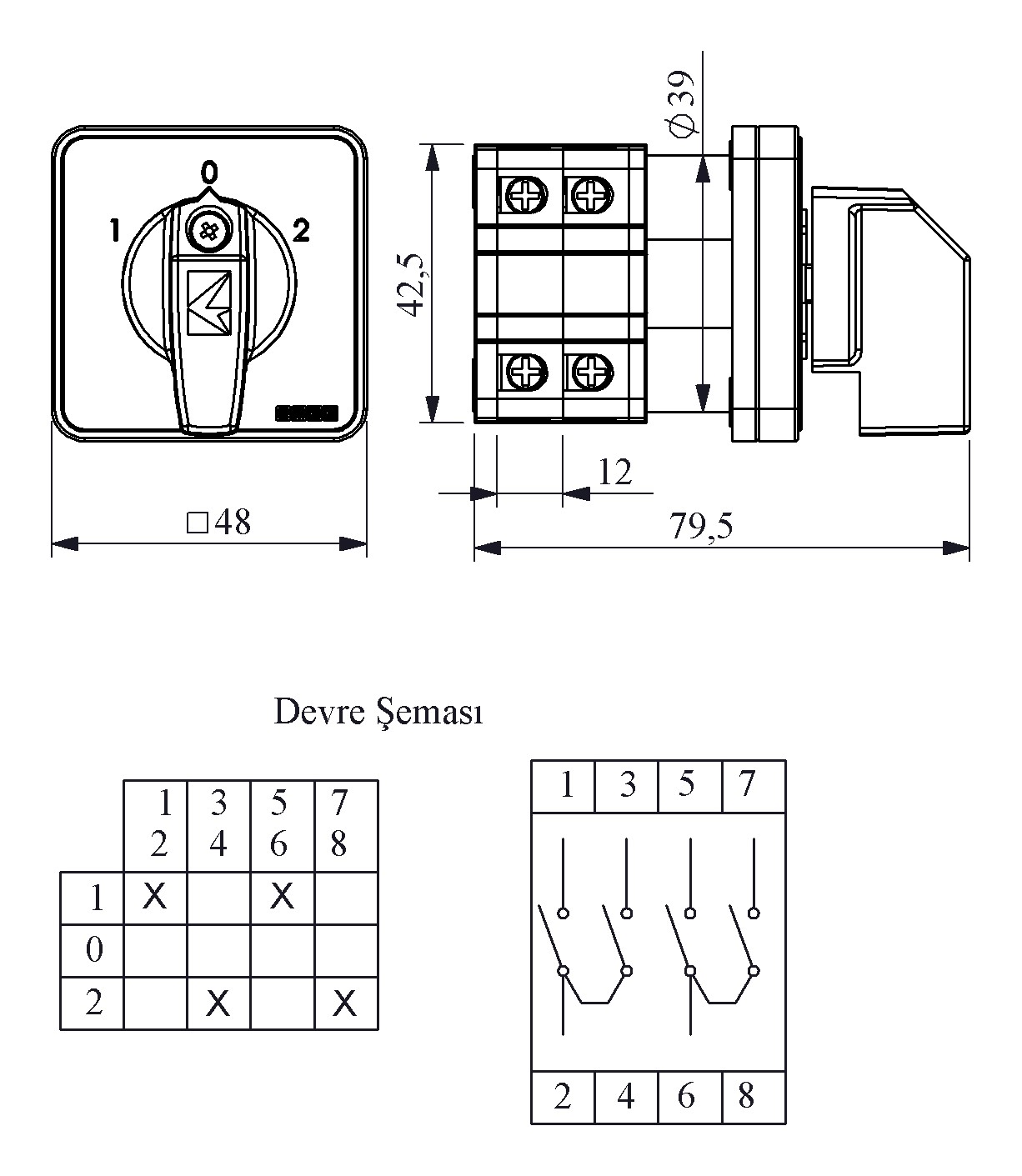 25A Kutup Değiştirici 2 Kutup (1-0-2) 60° 48*48 Pako Şalter