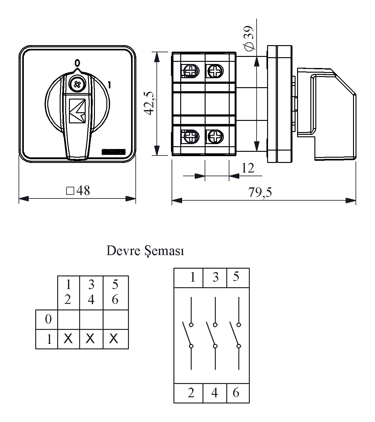 25A Motor Start 3 Faz (0-1) 60° 48*48 Pako Şalter