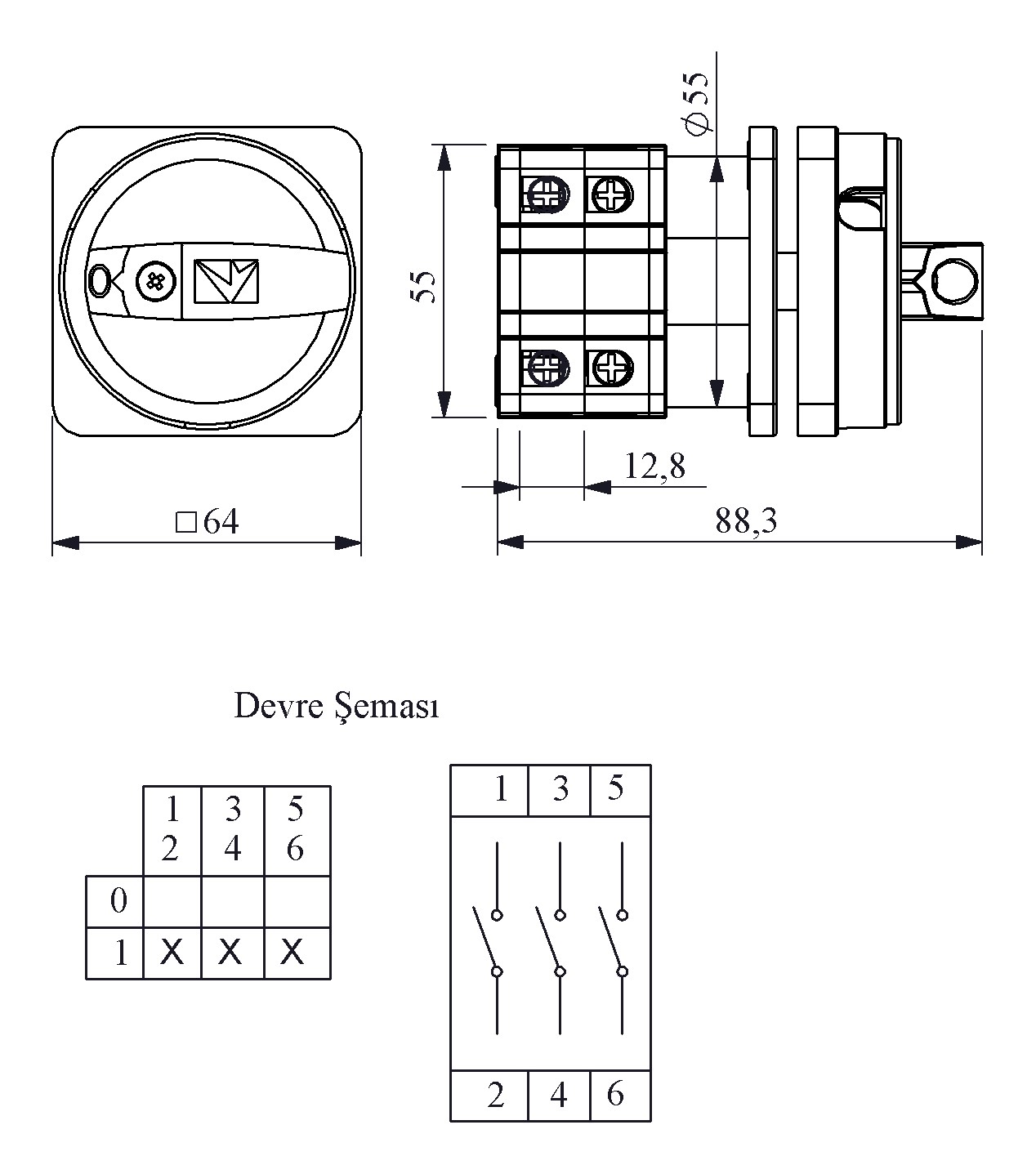 32A On-Off 3 Faz (0-1) 90° Emniyet 64*64 Pako Şalter