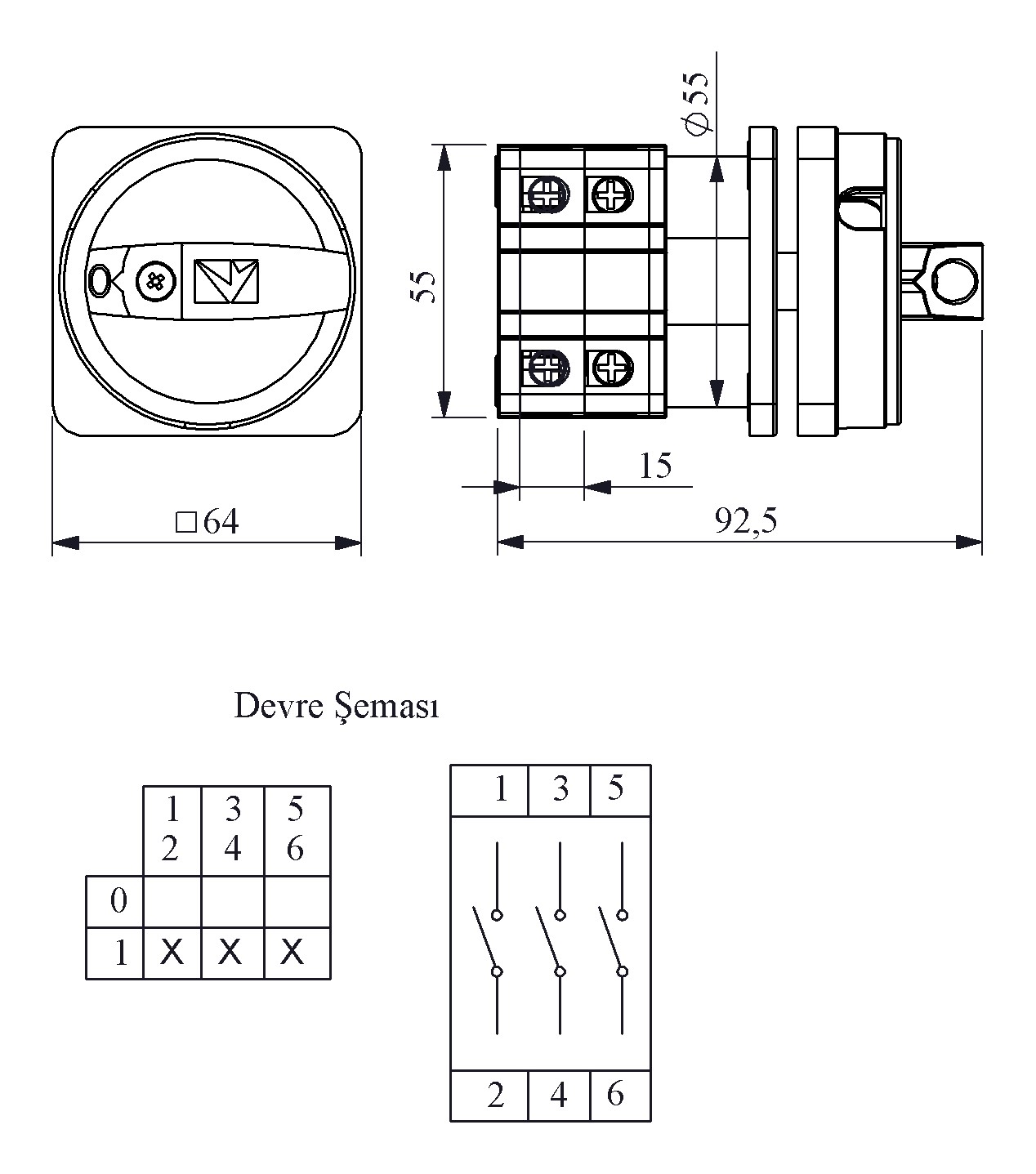 40A On-Off 3 Faz (0-1) 90° Emniyet 64*64 Pako Şalter