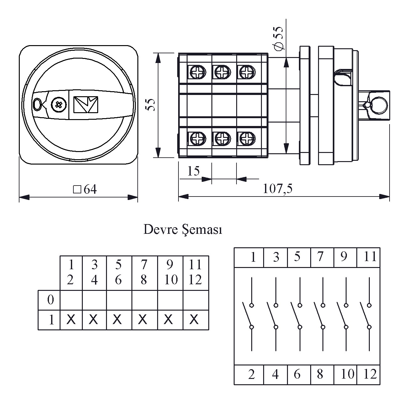 40A On-Off 6 Kutup (0-1) 90° Emniyet 64*64 Pako Şalter