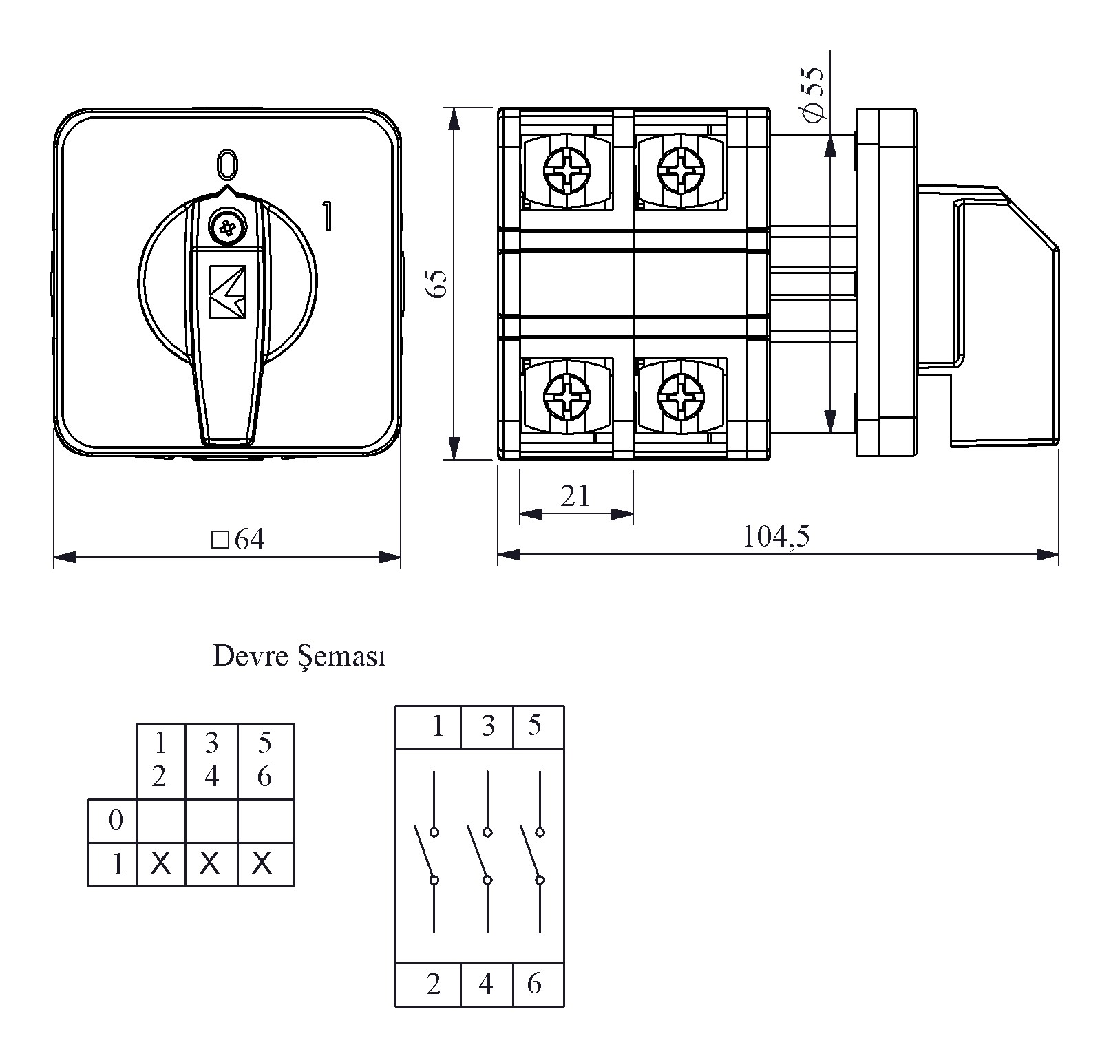 63A Motor Start 3 Faz (0-1) 60° 64*64 Pako Şalter