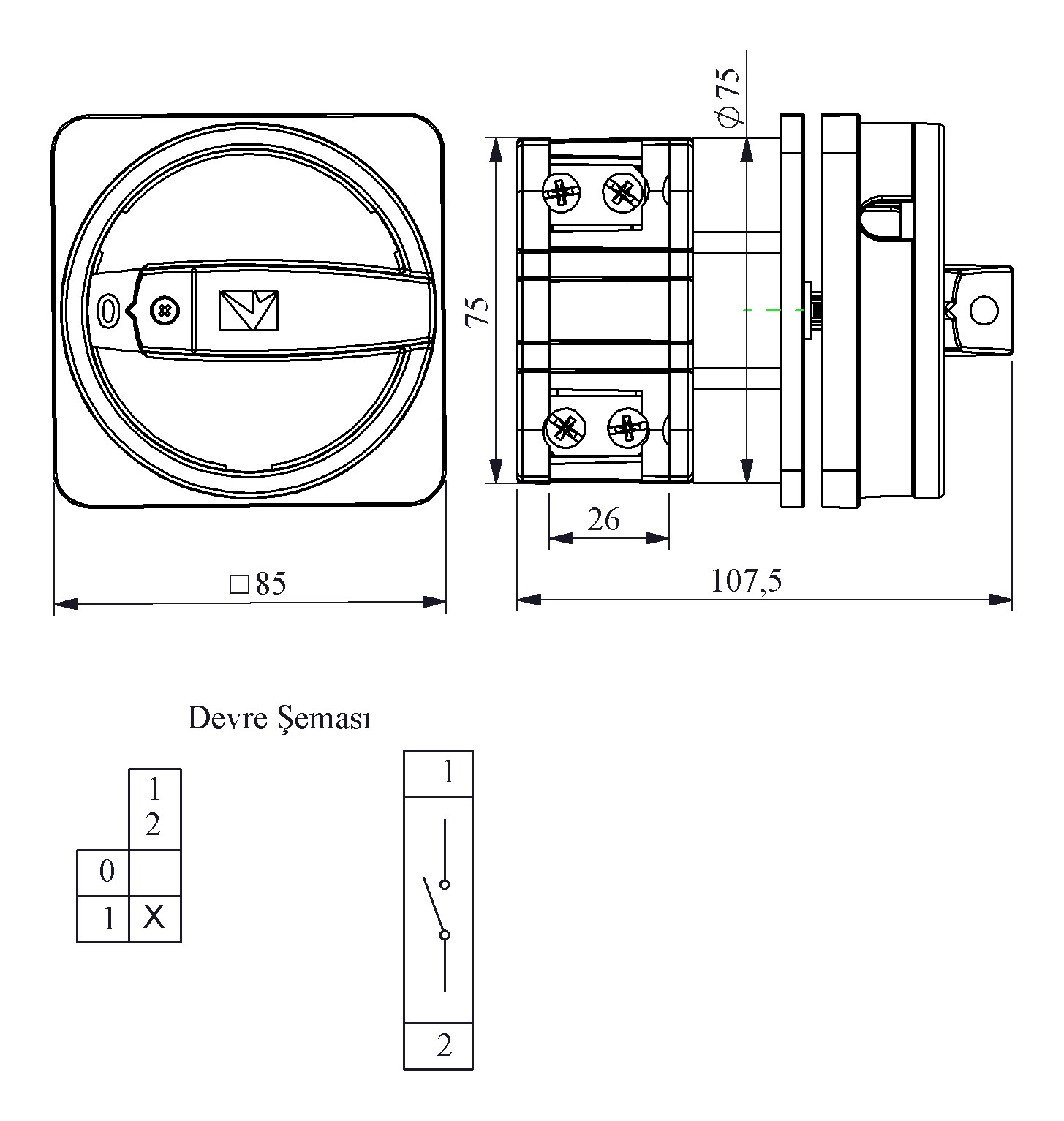80A On-Off 1 Faz (0-1) 90° Emniyet 85*85 Pako Şalter