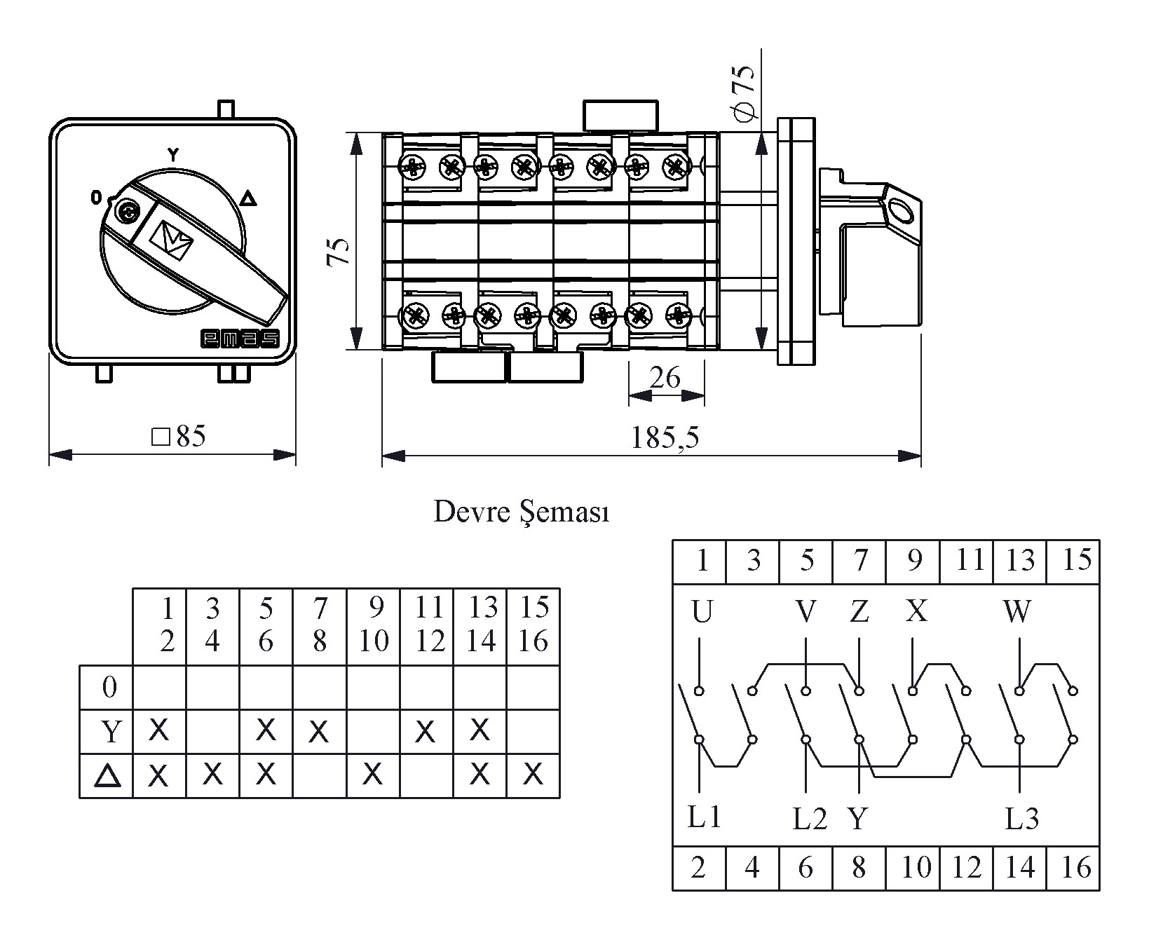 80A Yıldız-Üçgen 3 Faz (O-Y-U) 60° 85*85 Pako Şalter