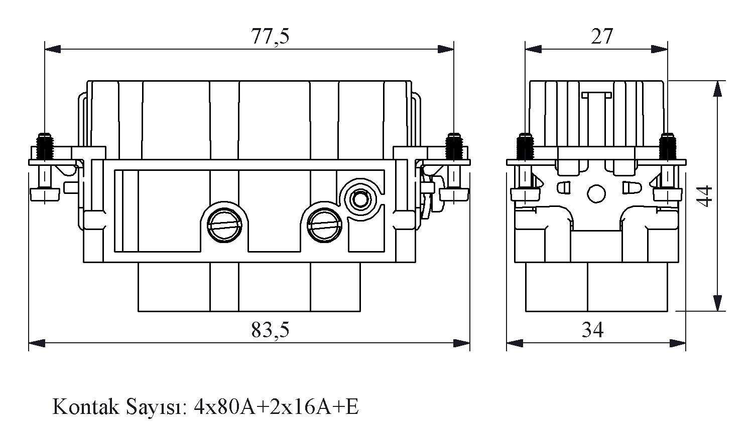 6 Kontak Çekirdek Priz (4x80A)+(2x16A) 1-6 Çok Kontaklı