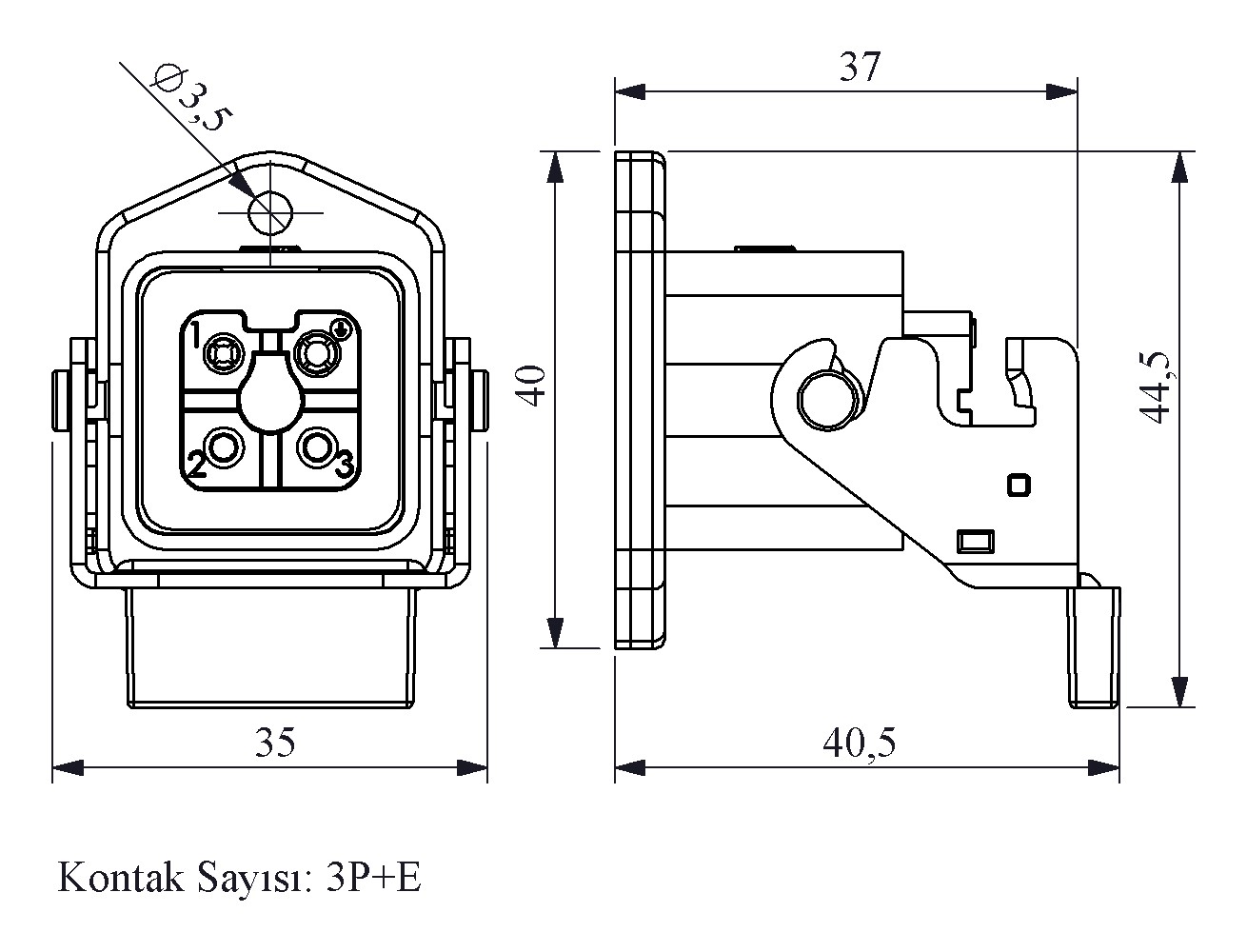 Metal 4 Kontak Makine Tipi Priz 10A Alttan Girişli 1 Metal Mandallı Çok Kontaklı