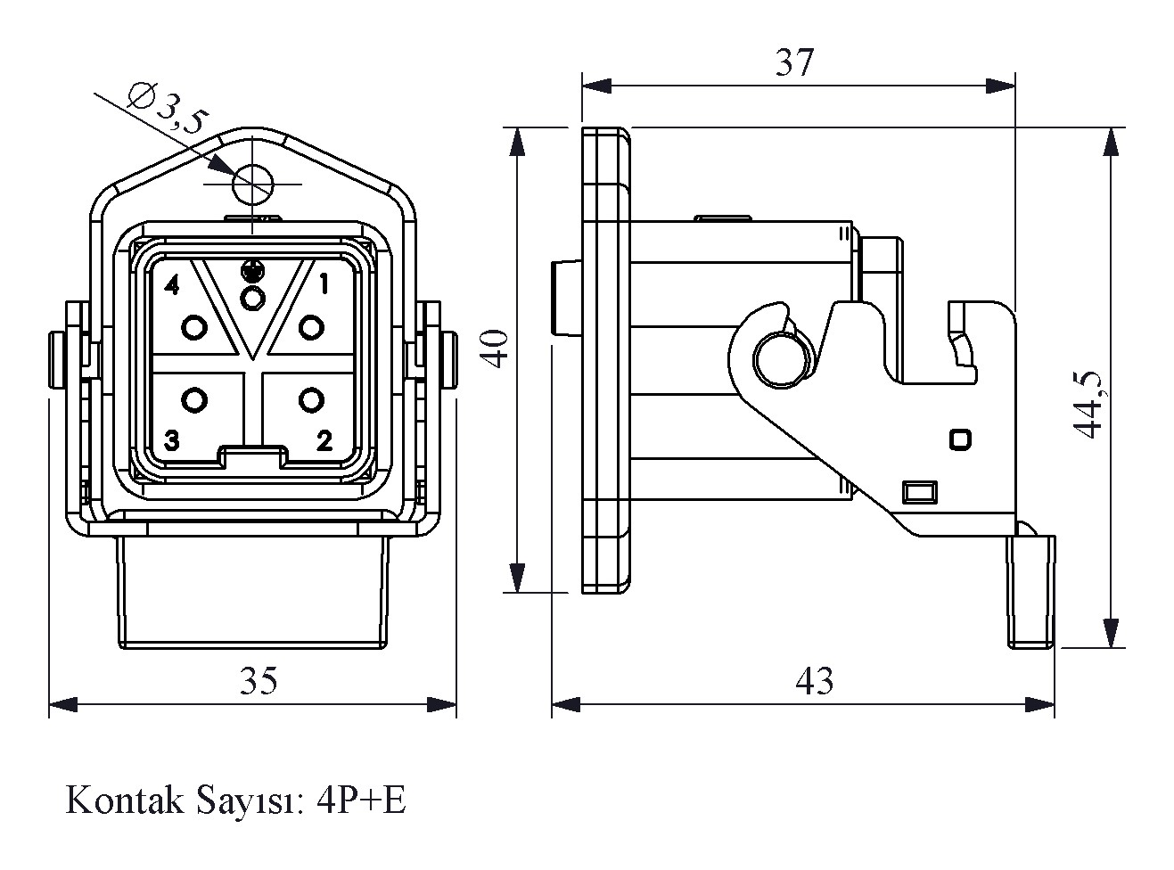 Metal 5 Kontak Makine Tipi Fiş 10A Alttan Girişli 1 Metal Mandallı Çok Kontaklı