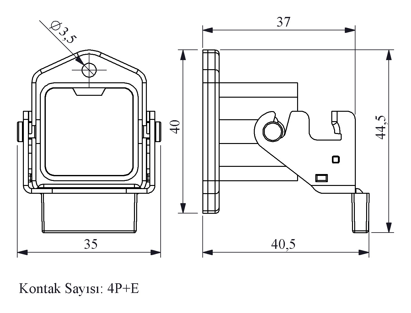 Metal 5 Kontak Makine Tipi Boş Gövde Alttan Girişli 1 Metal Mandallı Çok Kontaklı