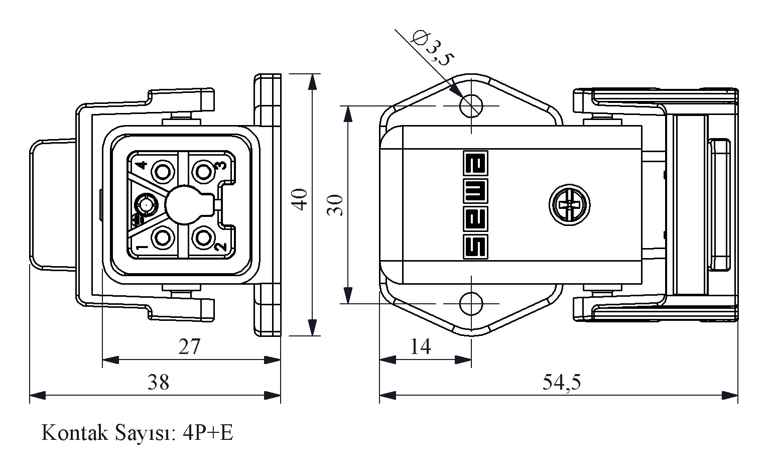 Metal 5 Kontak Eğik Tip Priz 10A Alttan Girişli 1 Mandallı Çok Kontaklı