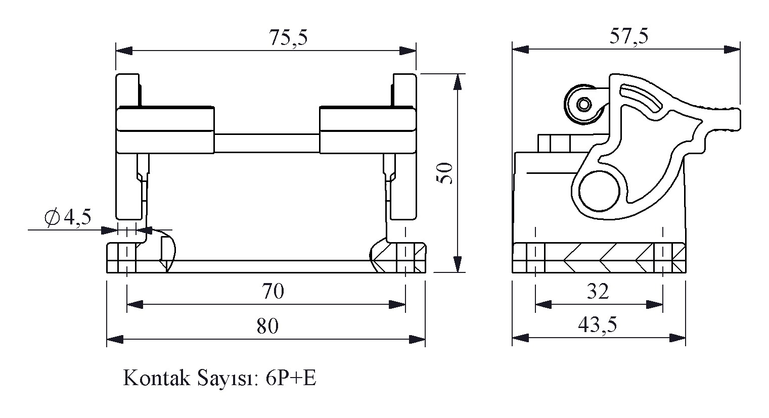 Metal 6 Kontak Makine Tipi Fiş 16A Alttan Girişli 2 Mandallı Çok Kontaklı