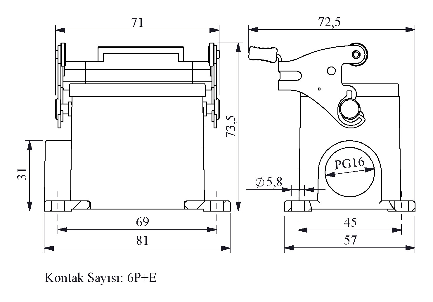 Metal 6 Kontak Duvar Tipi Boş Gövde Yandan Girişli 1 Metal Mandallı Çok Kontaklı