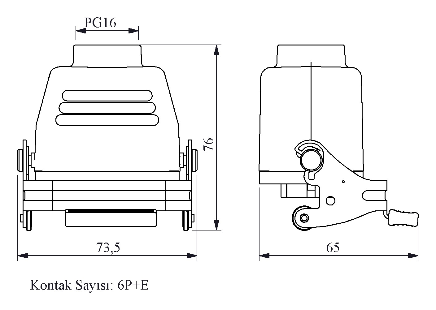 Metal 6 Kontak Uzatma Tipi Priz 16A Üstten Girişli 1 Metal Mandallı Çok Kontaklı