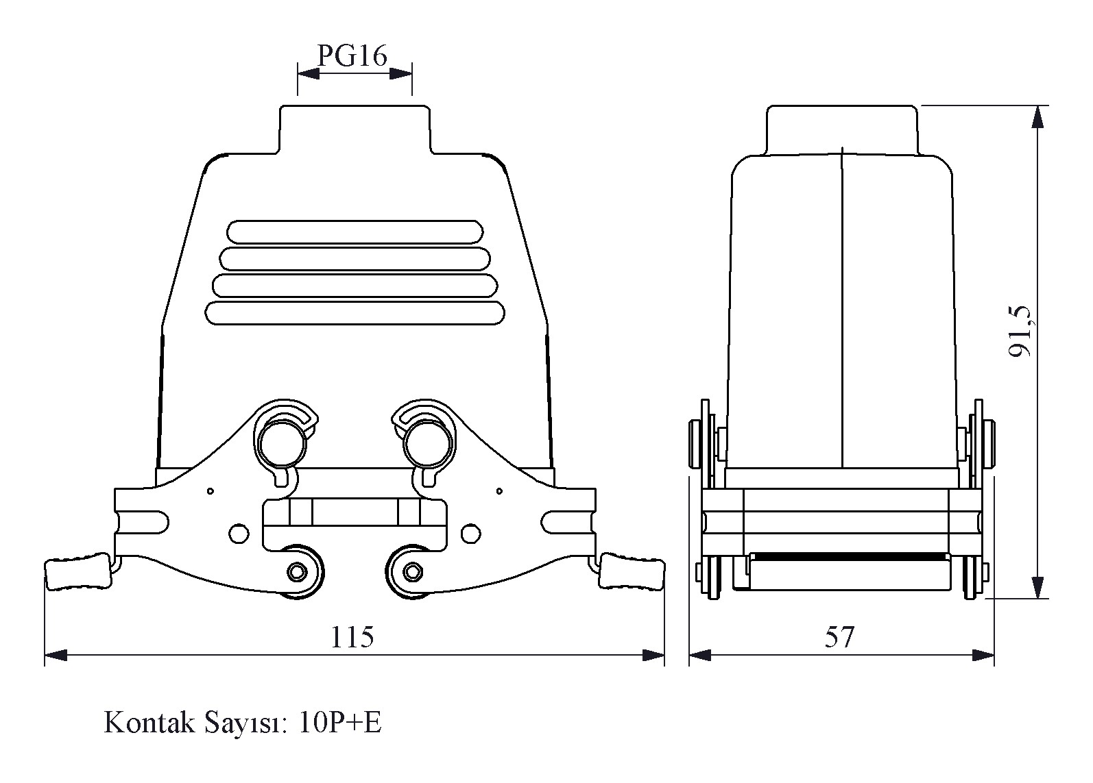 Metal 10 Kontak Uzatma Tipi Fiş 16A Üstten Girişli 2 Metal Mandallı Çok Kontaklı