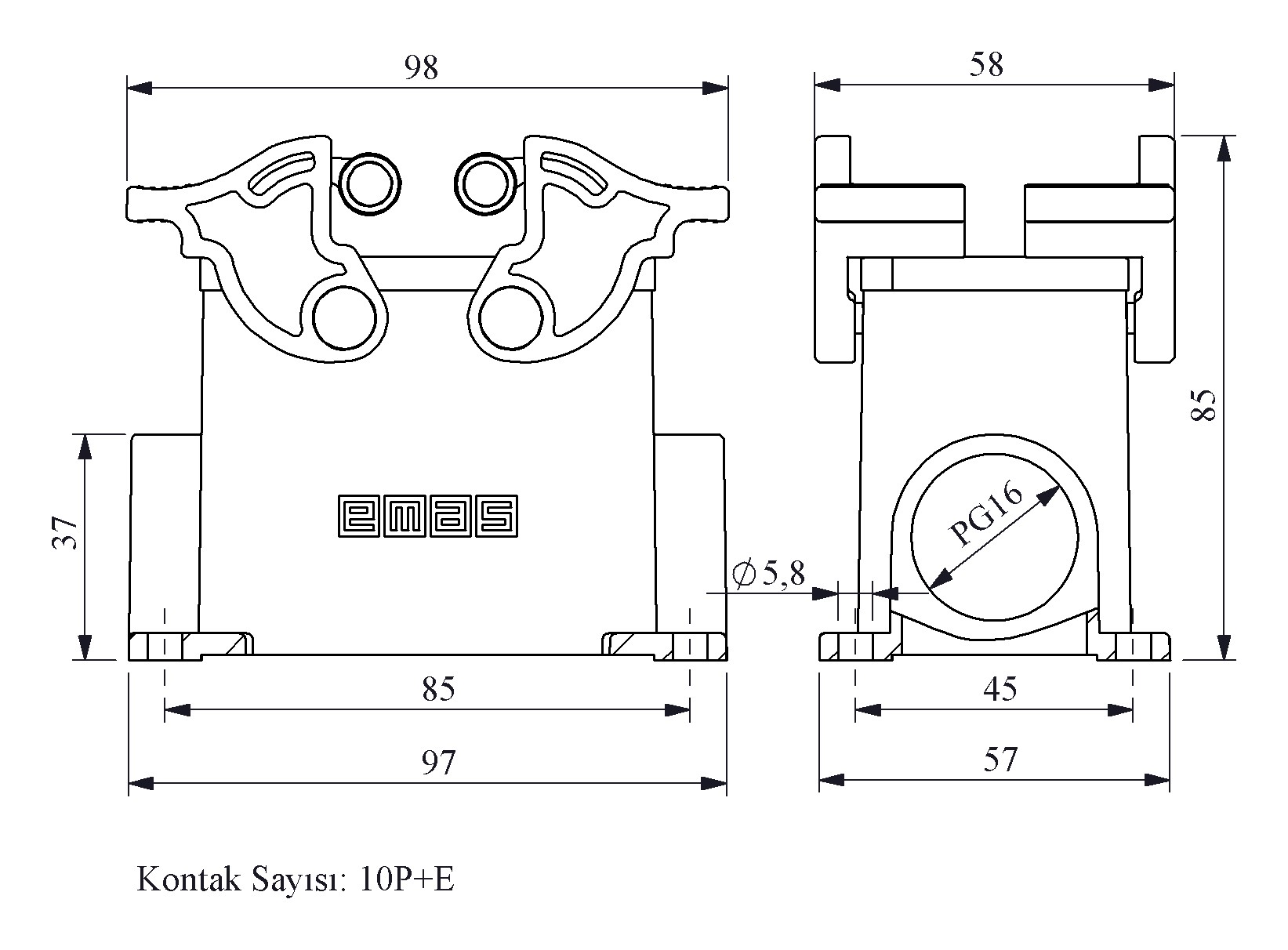Metal 10 Kontak Duvar Tipi Boş Gövde Çift Yan Girişli 4 Mandallı Çok Kontaklı