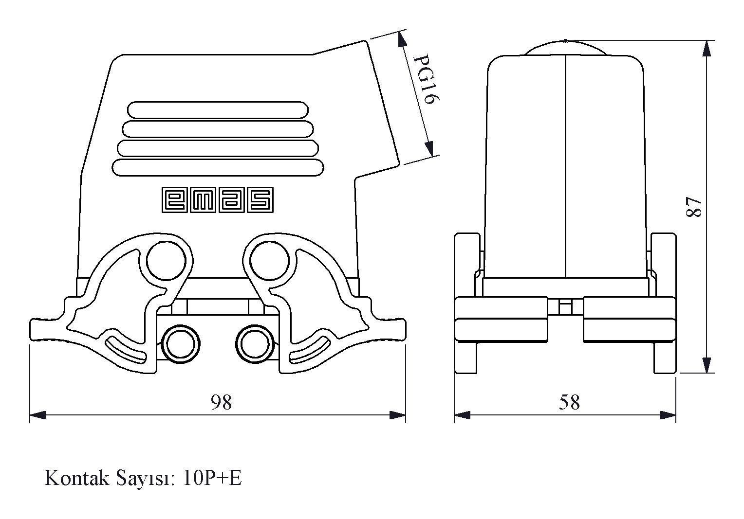Metal 10 Kontak Uzatma Tipi Priz 16A Yandan Girişli 4 Mandallı Çok Kontaklı