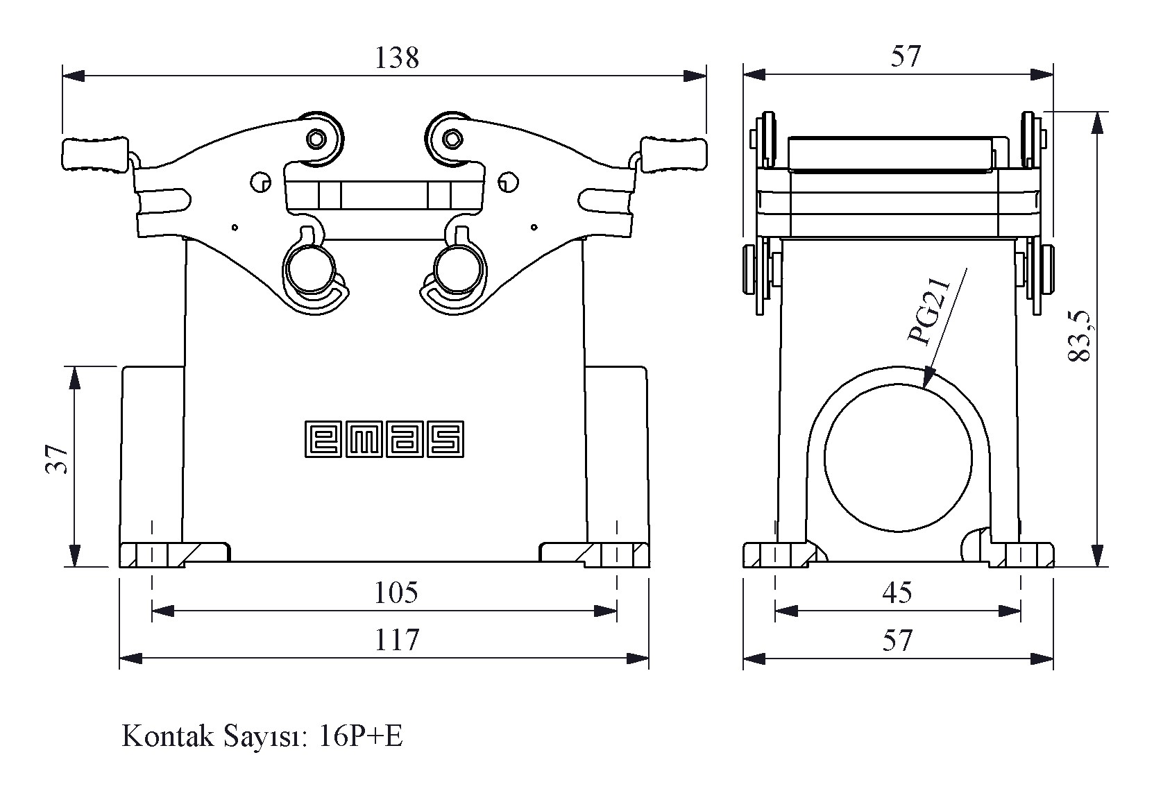 Metal 16 Kontak Duvar Tipi Priz 16A Çift Yan Girişli 2 Metal Mandallı Çok Kontaklı