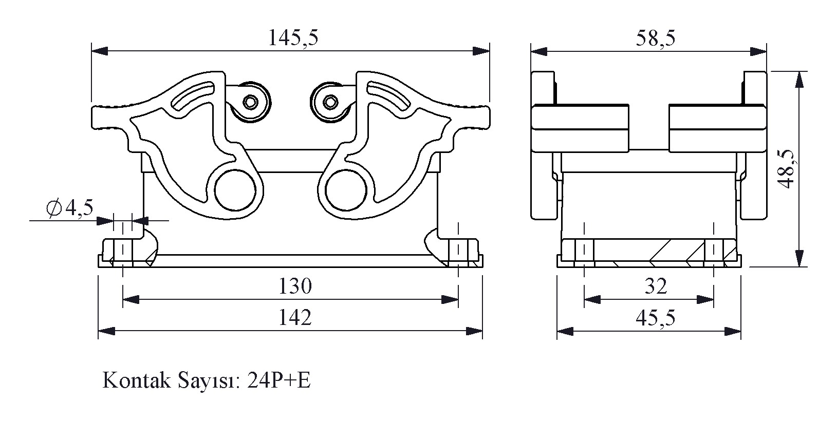 Metal 24 Kontak Makine Tipi Boş Gövde Alttan Girişli 4 Mandallı Çok Kontaklı
