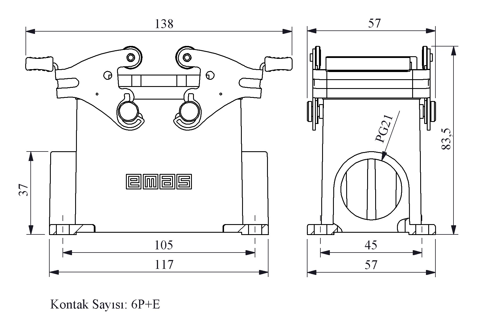 Metal 6 Kontak Duvar Tipi Fiş 35A Yandan Girişli 2 Metal Mandallı Çok Kontaklı