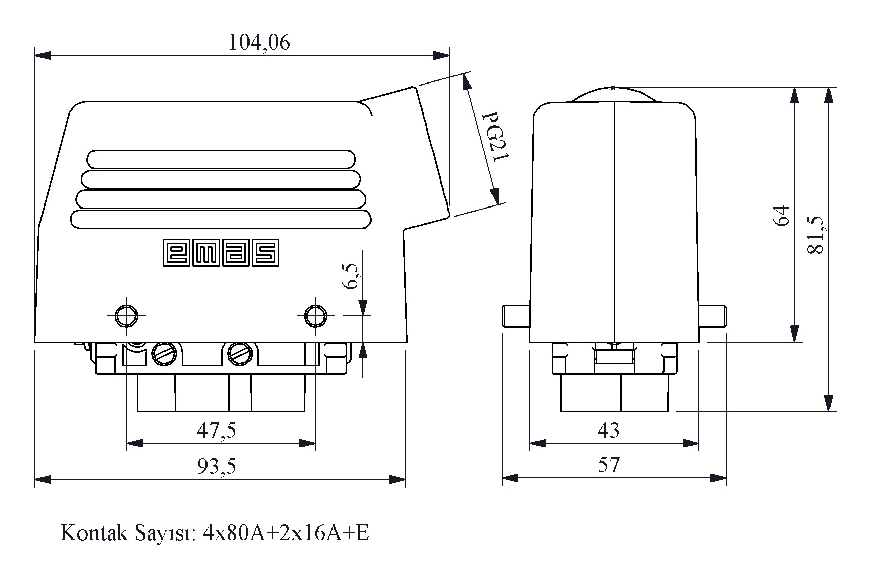 Metal 6 Kontak Uzatma Tipi Fiş (4x80A)+(2x16A) Yandan Girişli Çok Kontaklı