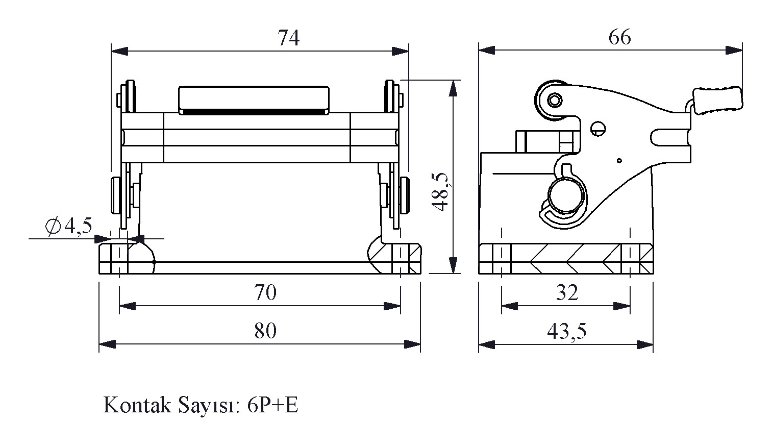 Metal 6 Kontak Makine Tipi Priz 16A Alttan Girişli 1 Metal Mandallı Çok Kontaklı