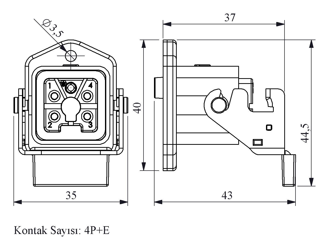 Plastik 5 Kontak Makine Tipi Priz 10A Alttan Girişli 1 Metal Mandallı Siyah Çok Kontaklı