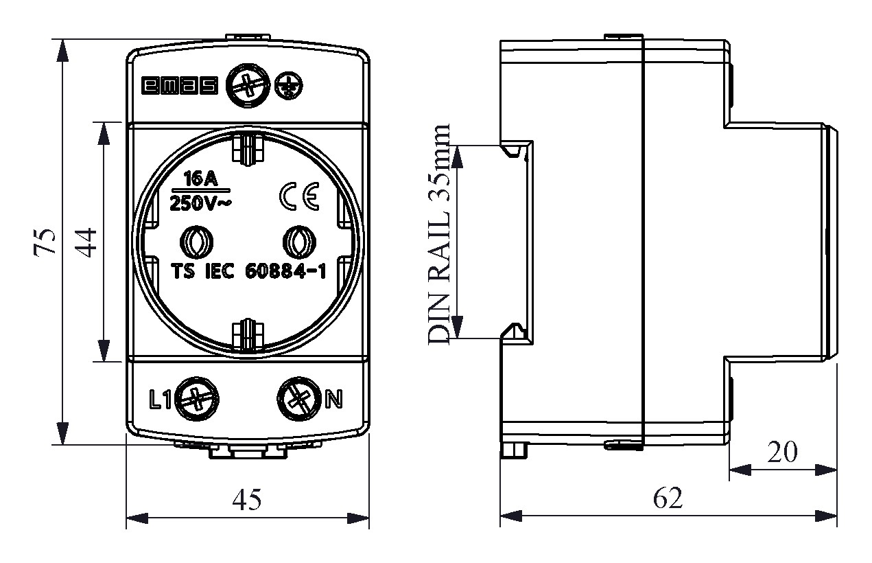 2P+E Ray Tipi Priz 16A Gri Pano Tipi