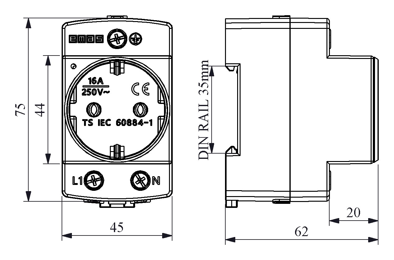 2P+E Ray Tipi Priz 16A Gri LED li Pano Tipi