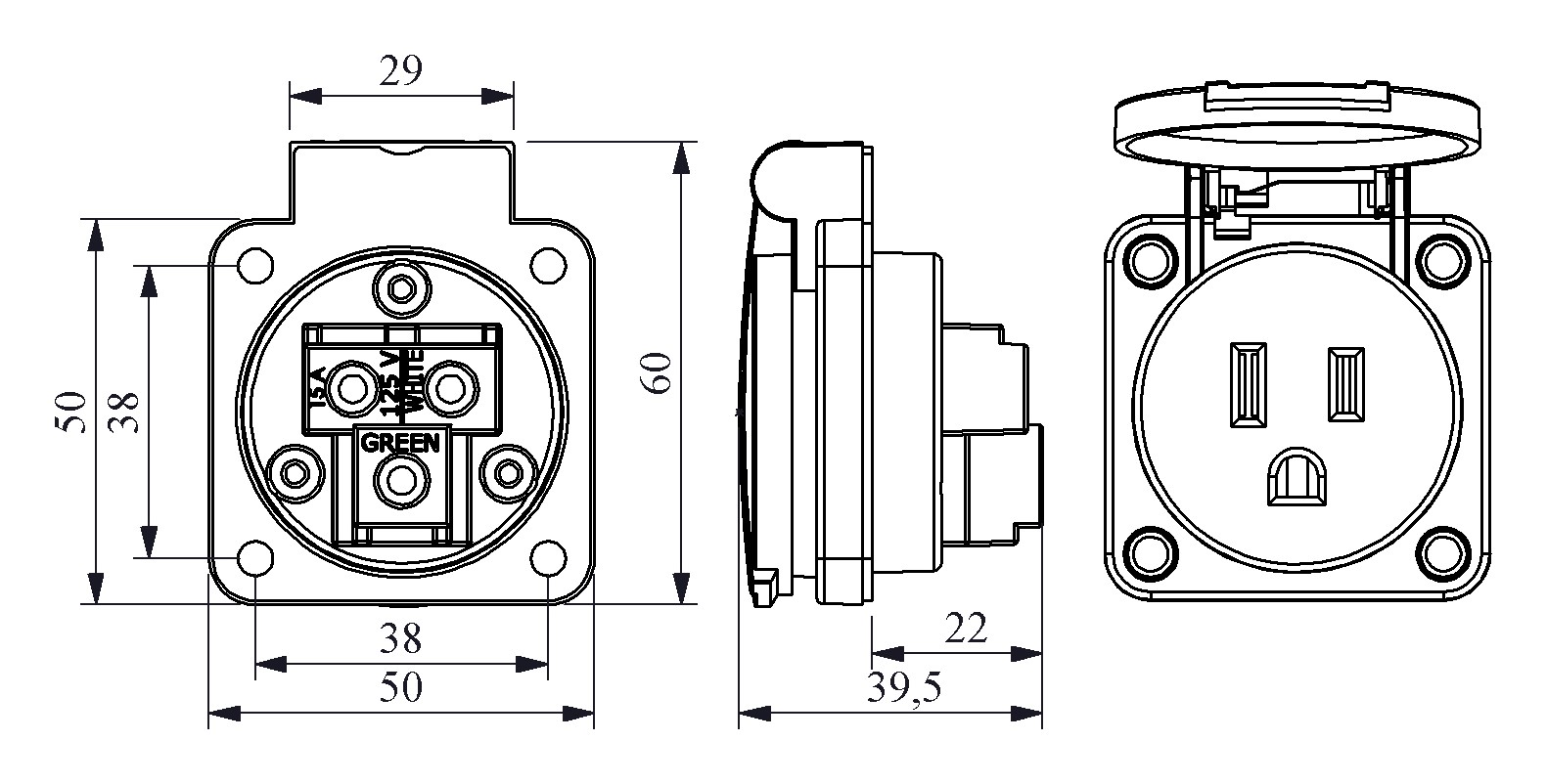 2P+E Pano Tipi Priz 16A Siyah Amerikan Pano Tipi