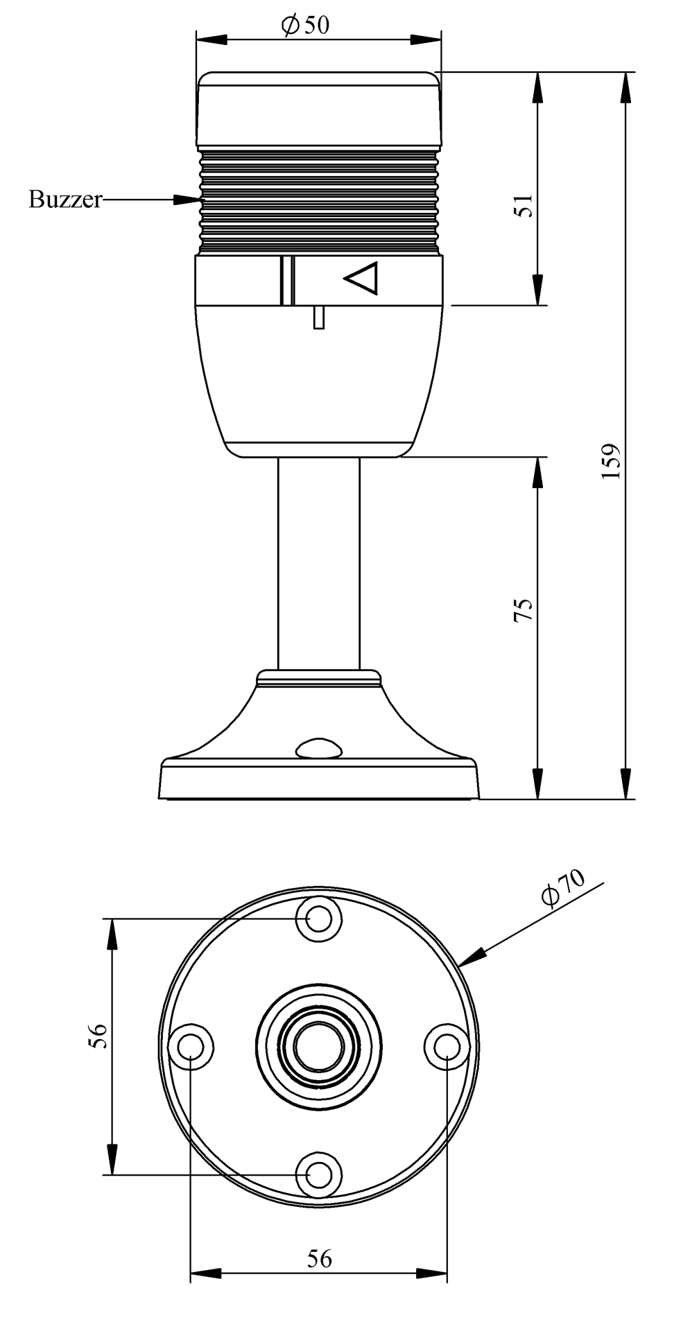IK Serisi Tek Katlı 220V AC Buzzerlı 100mm Borulu Plastik Ayaklı LED Kolon 50mm