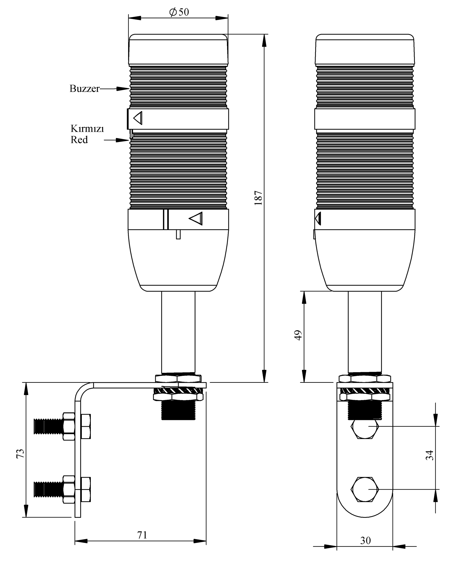 IK Serisi İki Katlı 220V AC Buzzerlı Flaşör Duvar (L) Ayaklı LED Kolon 50mm