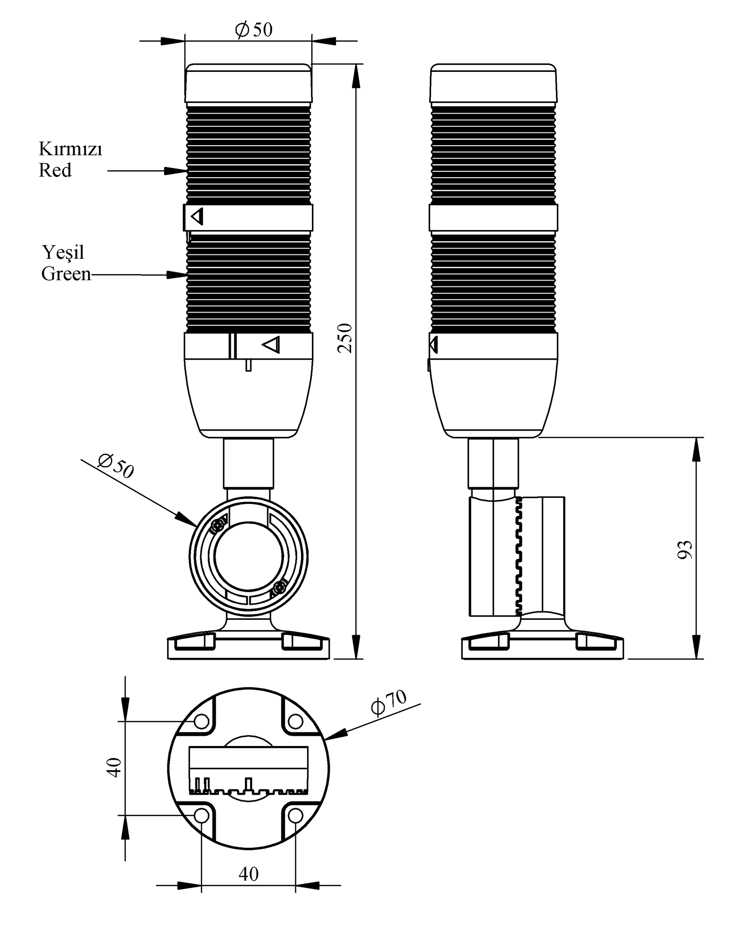 • Ø50Veya Ø70 çap seçeneği