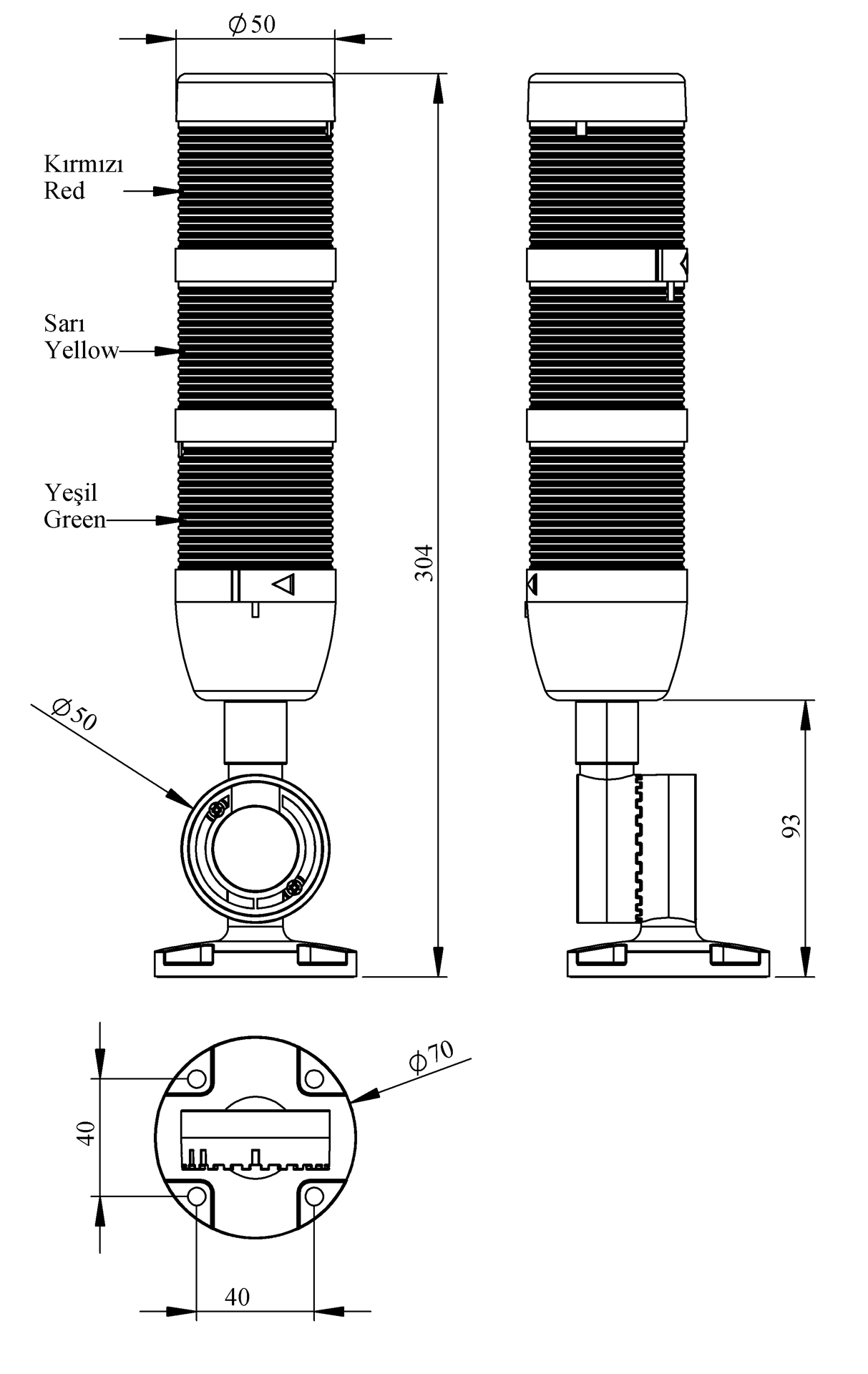 IK Serisi Üç Katlı 24V AC/DC 110mm Ayarlanabilir Ayaklı LED Kolon 50mm