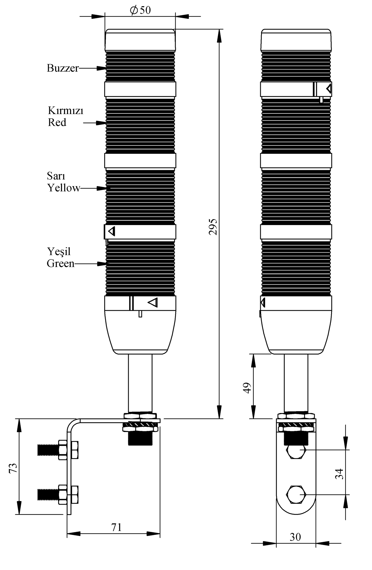 IK Serisi Dört Katlı 24V AC/DC Buzzerlı Duvar (L) Ayaklı LED Kolon 50mm