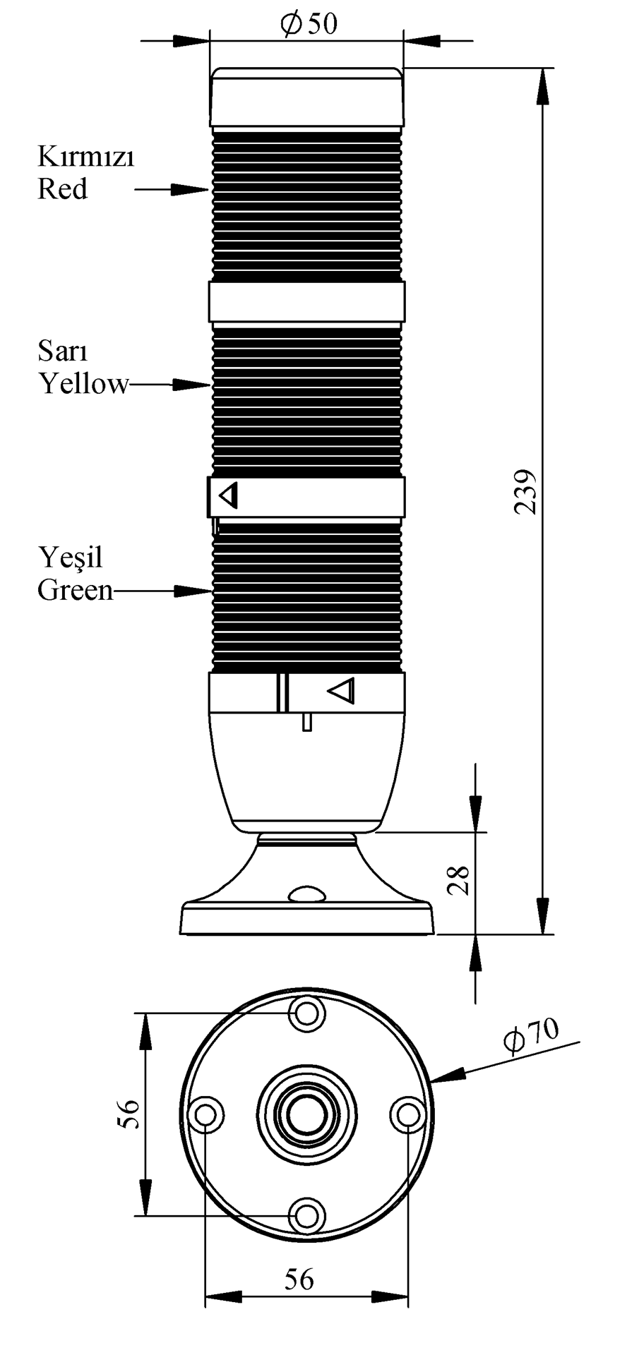 • Ø50Veya Ø70 çap seçeneği