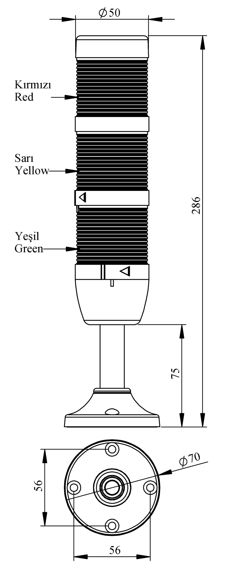 IK Serisi Üç Katlı 220V AC 100mm Borulu Plastik Ayaklı LED Kolon 50mm