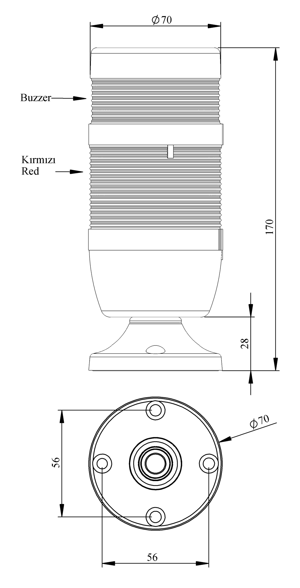 IK Serisi İki Katlı 220V AC Buzzerlı 45mm Borulu Plastik Ayaklı LED Kolon 70mm