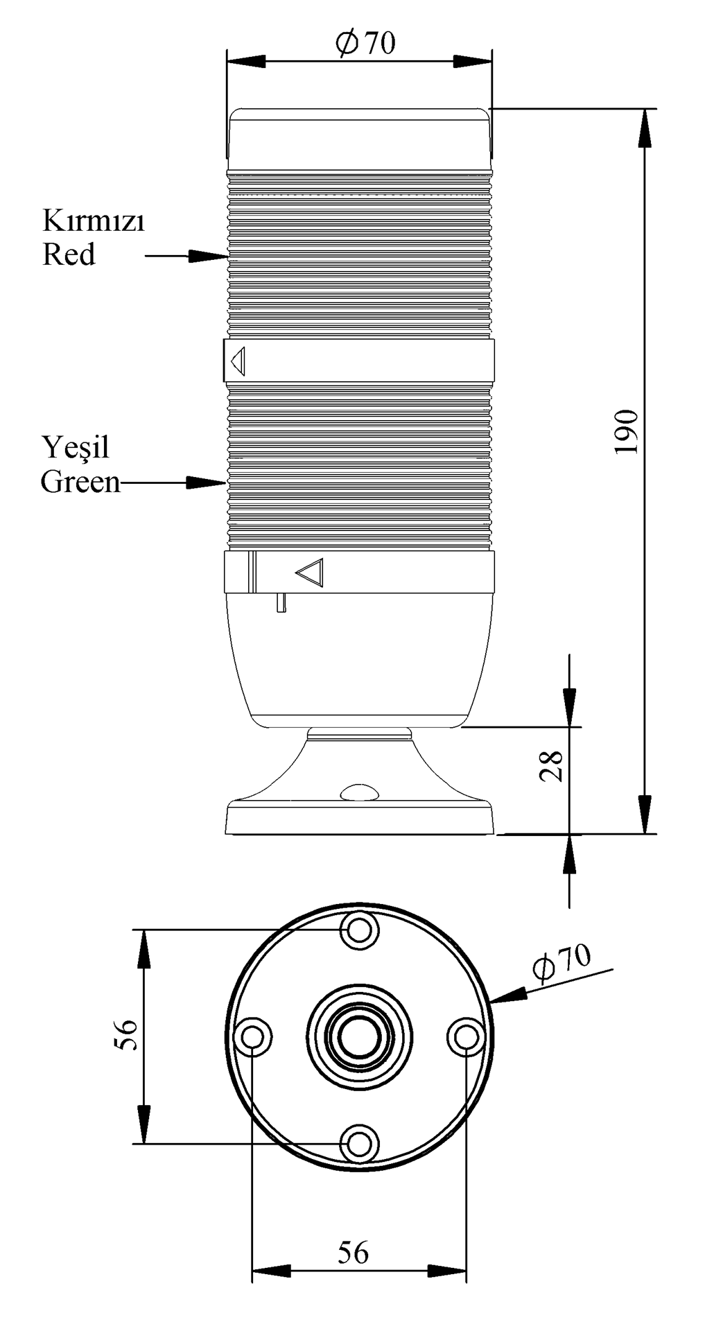 IK Serisi İki Katlı 24V AC/DC 45mm Borulu Plastik Ayaklı LED Kolon 70mm