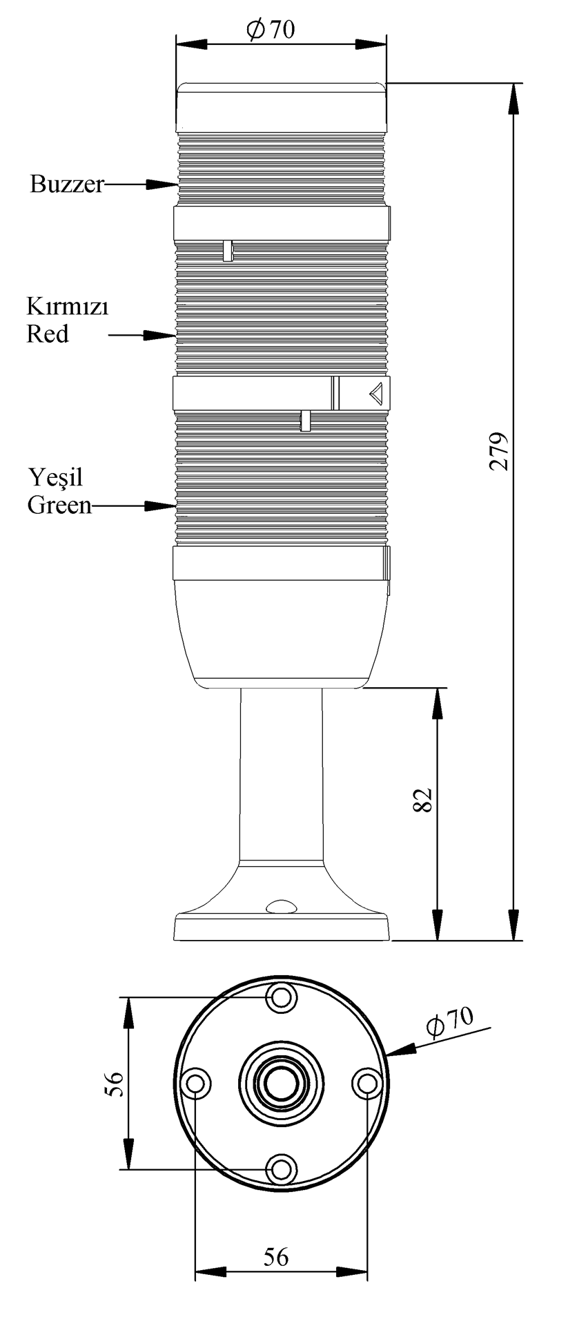 IK Serisi Üç Katlı 24V AC/DC Buzzerlı 110mm Plastik Boru ve Ayaklı LED Kolon 70mm