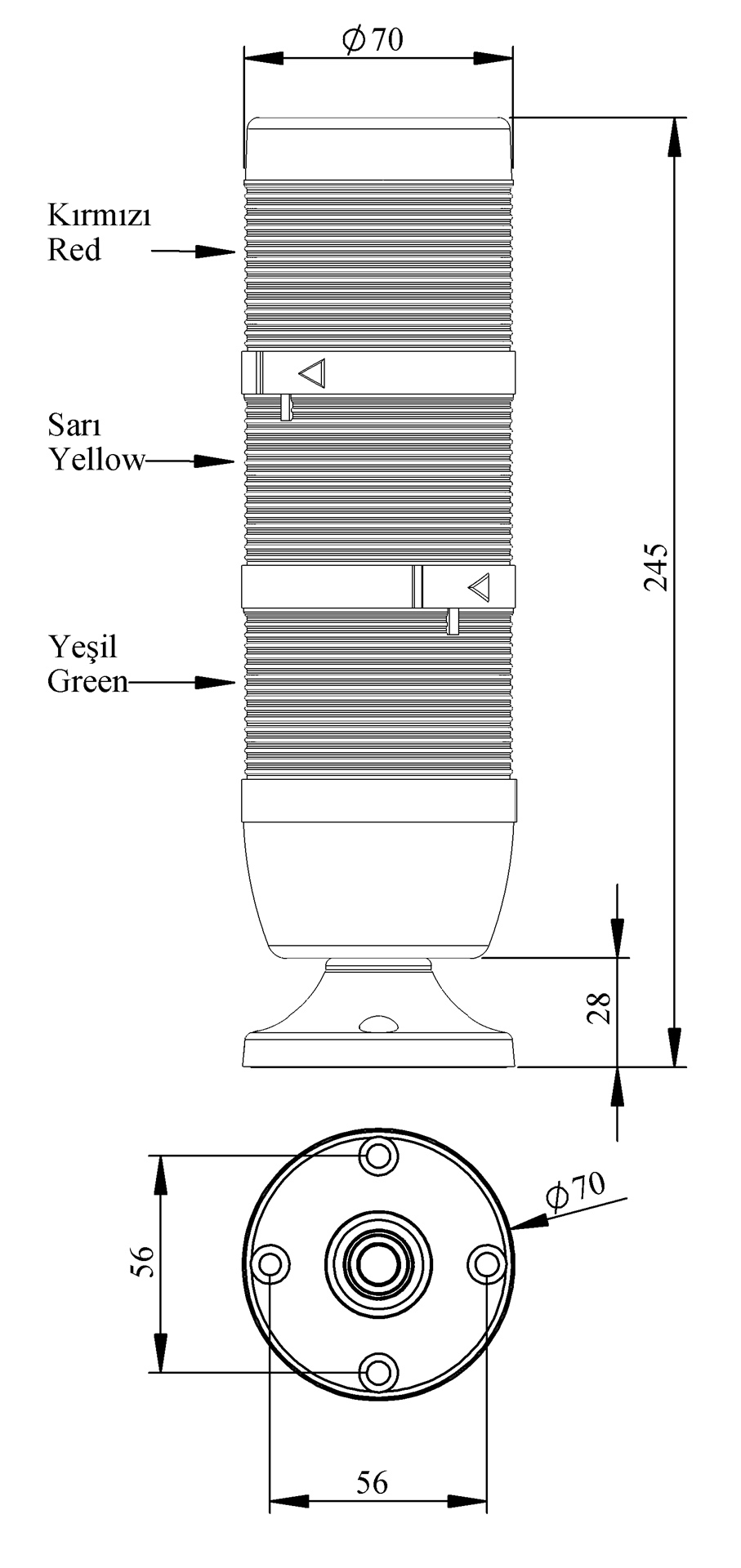 IK Serisi Üç Katlı 24V AC/DC 45mm Borulu Plastik Ayaklı LED Kolon 70mm
